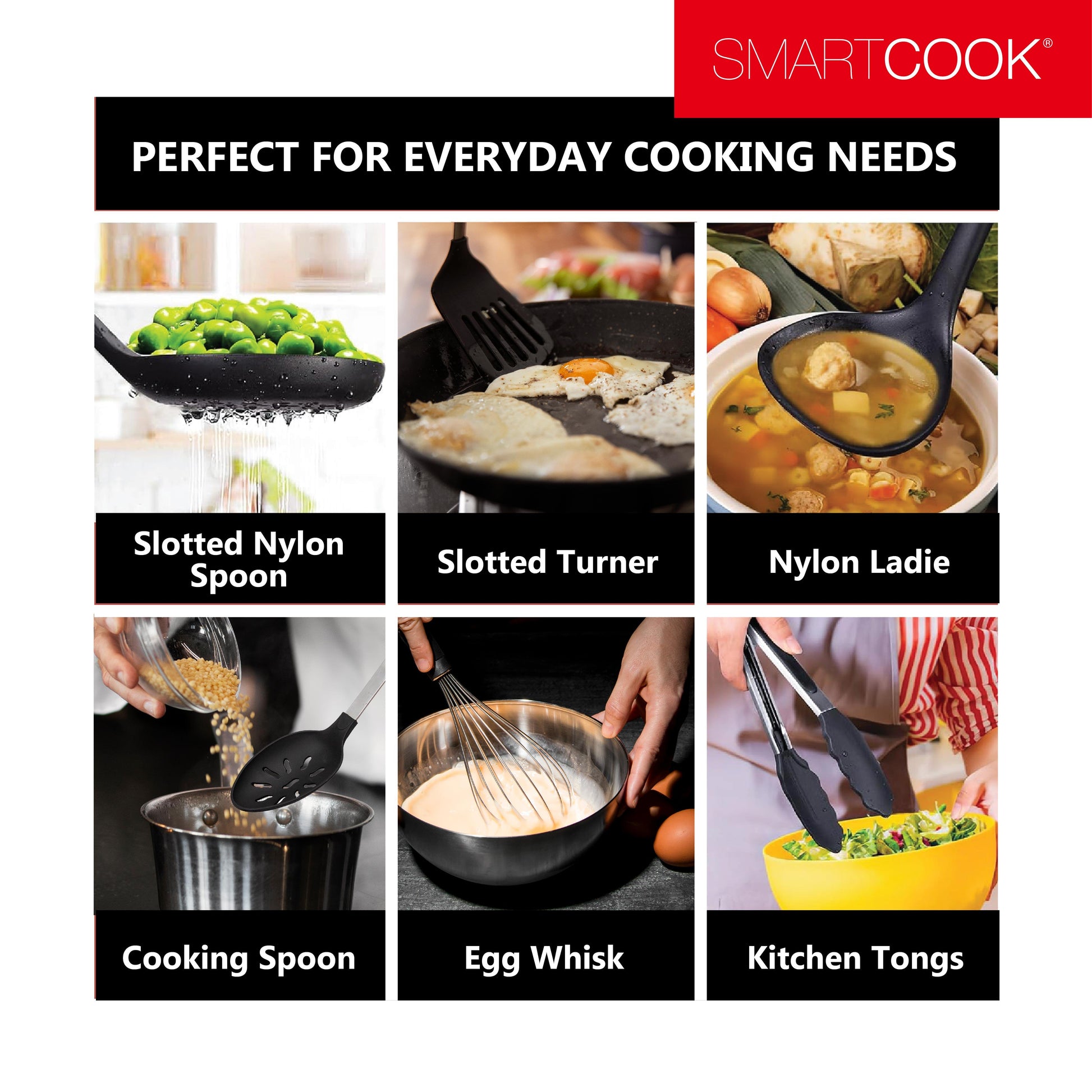 Smartcook 14 pcs Silicone Kitchen Utensils Set, Silicone Cooking, Turner Tongs, Spatula,Spoon, Brush,Whisk, Kitchen Utensil Gadgets Tools Set for Nonstick Cookware, Dishwasher Safe ,Lightweight, Knife, Nylon, Ladle