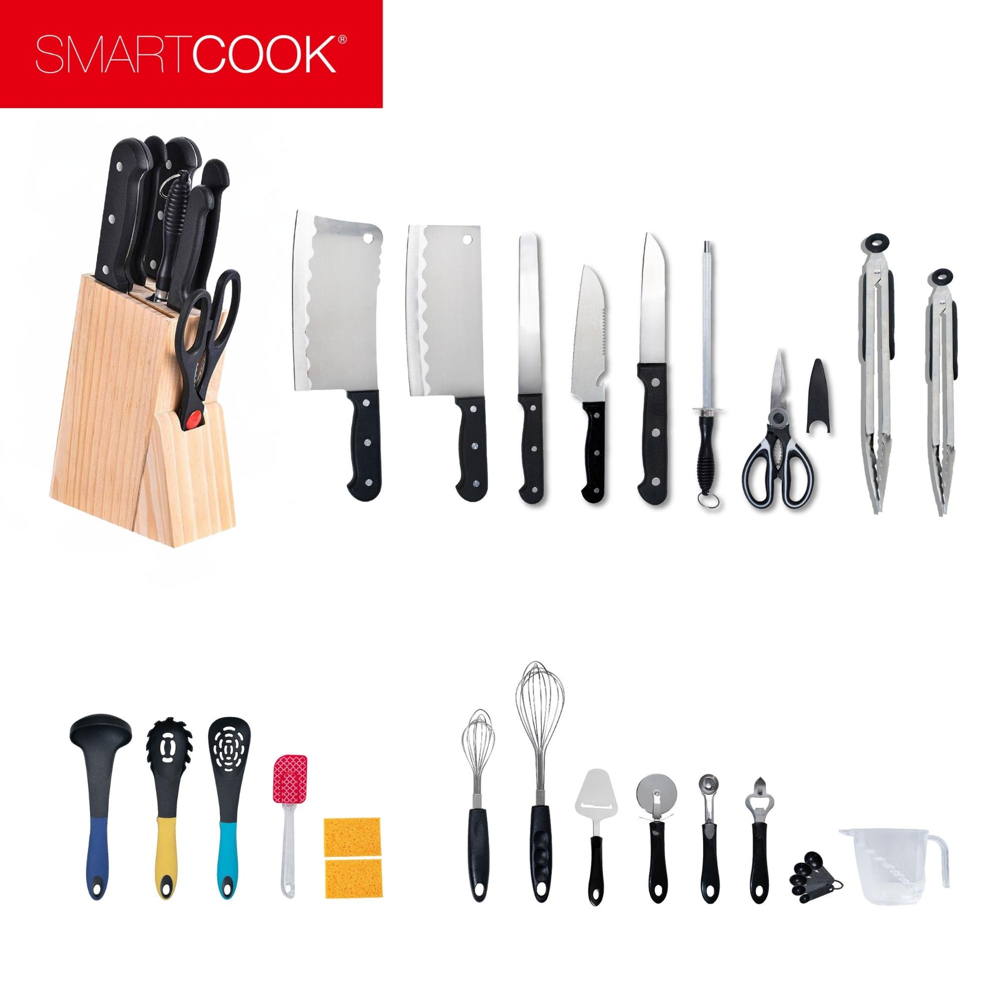 SmartCook 27 Pcs Kitchen Utensils Set with kitchen Knife Block Set with sharpener, Premium Stainless Steel,Cooking Utensils Set, Kitchen Gadgets Tools Set, Lightweight and Strong, Spoon, Ladle, Silicone Whisk and more, Utensils de Cocina