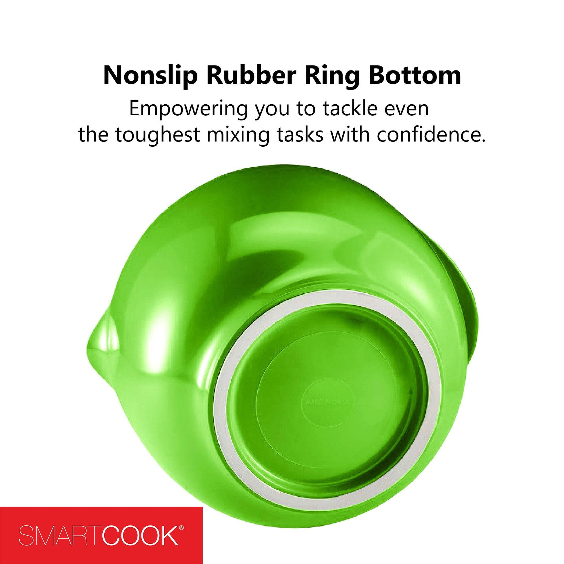 SmartCook Nesting Mixing Bowls Set with Bamboo Utensils - Set of 3 Prep Bowls, 2.5 quart, 3.5 quart, 4.5 quart, Non-Slip Bottoms with Easy Pour Spout, Reduce Mess, Great for Mixing & Serving, BPA Free Plastic, Dishwasher Safe, (Green)